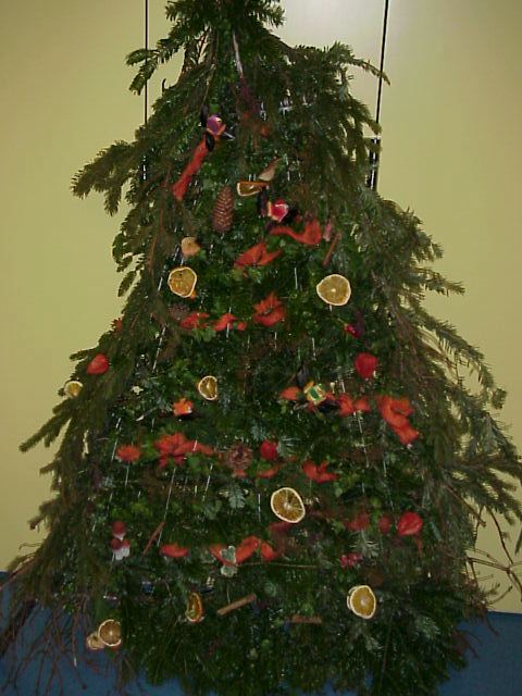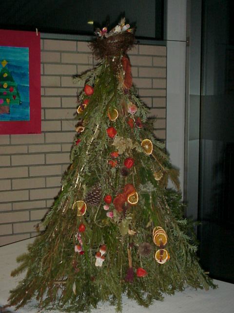 Avant d'accrocher les branches de sapin à la ficelle, il faut préparer des montants avec des branches d'arbres et les quadriller avec de la ficelle. Ensuite, il faut décorer le nouveau sapin d'éléments naturels.