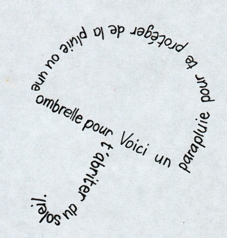 Nous sommes partis de la brochure de grammaire 2P dont voici l'exemple du parapluie. Nous avons analysé la forme et le contenu. |