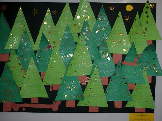 Les petits ont pu exercer leur pré-écriture en décorant ces sapins avec des stylos argentés. Et avec quelques étoiles à coller, c'est très joli !