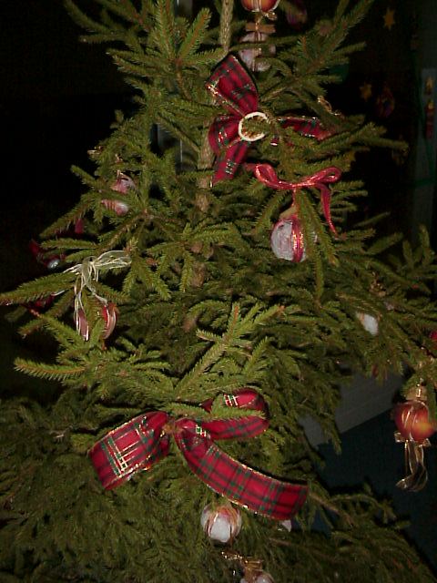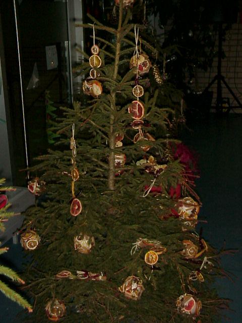 - boules décorées d'éléments naturels : oranges ou kiwis séchés, fruits secs, noix, épices (cannelle, anis étoilé)