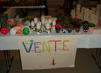 On a fait des bougies, des cactus, des puzzles. On a fait des affiches pour la vente. Nous avons aussi vendu des foulards mais on ne les voit pas sur la photo.