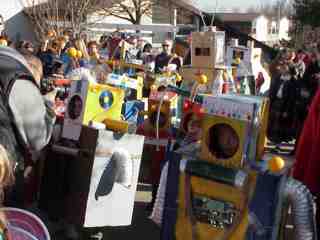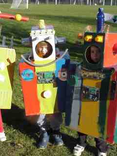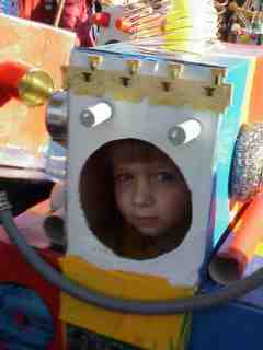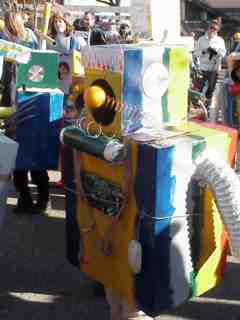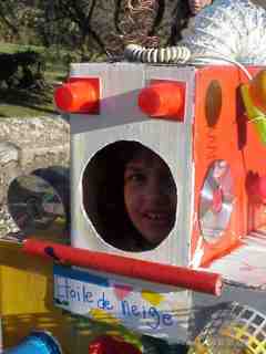 On a fait le cortège avec nos robots. Il y avait aussi Noémie la sorcière, Guillaume le Zorro, Eliane la banane et les villageois. |