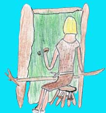 Le métier à tisser est très simple. Larchéologue ne retrouve que des galets à double encoche, ou des poids en terre cuite qui tendent les fils verticaux formant la chaîne. Lartisan fait passer les fils en les croisant. Les fils de la trame sont attachés à la navette. |